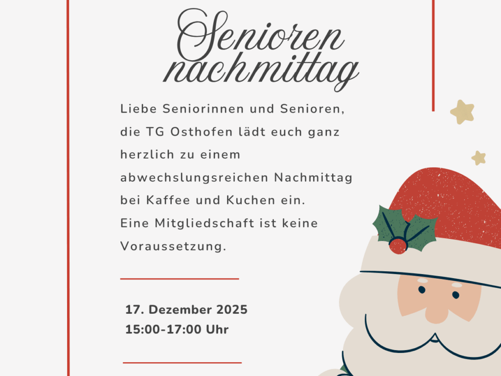 Liebe Seniorinnen und Senioren, die TG Osthofen lädt euch ganz herzlich zu einem abwechslungsreichen Nachmittag…